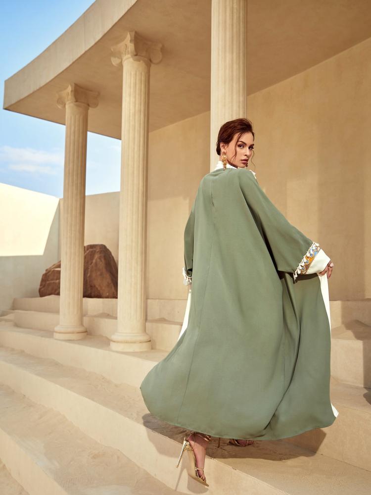 عباية طويلة تتميز بتصميمها الأنيق الذي يجمع بين الراحة والفخامة تناسب جميع المناسبات وتوفر لكِ إطلالة مميزة تعكس ذوقك الرفيع مع أقمشة خفيفة تجعلها مثالية للأيام الحارة
